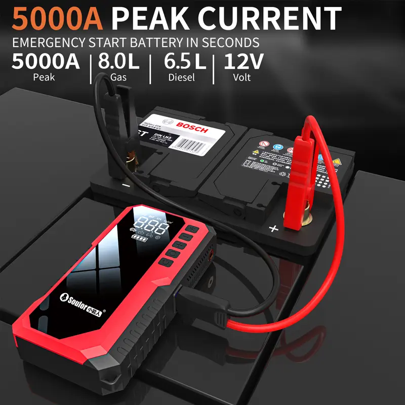 Portable Car Jump Starter with Air Compressor, 5000A 12V Gasoline & Diesel Engine Battery Enhancer, Fast Charging USB Output Jump Box for Car Battery